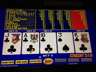 The day has its good moments, but there are so many 'almost' hands in my video poker play. I chop around quite a bit and by the end of the day, I've been dealt 6 or 7 four-to-a-royal.