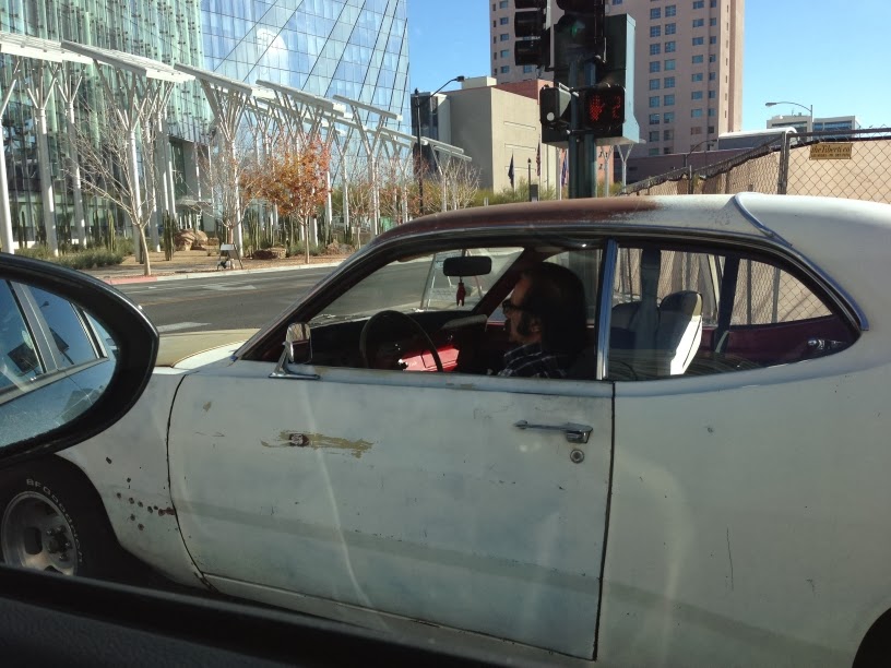 The best part of the day was spotting this great old school Plymouth Duster, piloted by a great old school mutton chopped Plymouth Duster type guy. Only if you look like this guy can you drive a Duster!